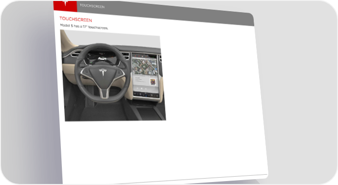 TOUCHSCREEN TOUCHSCREEN Model S has a 17" touchscreen. 4 Model S | 2016 Emergency Response Guide Page 4 Page 6