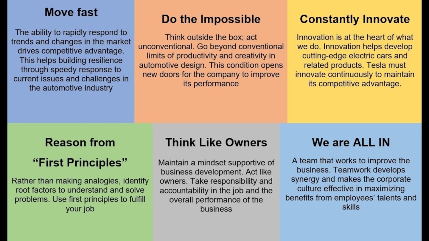 People and Culture What do we see as impact? Introduction Our employees have gotten us to where we are today. To continue innovating and changing the world for the better, we must ensure we have a talented and engaged workforce with ample opportunity to contribute to our mission and grow professionally. Meaningful work: Working for Tesla is not just any job. The products we build are necessary for transitioning to a sustainable future. Respectful, safe, inclusive and equitable workplace: Tesla is a majority-minority company. We strive to be a workplace where people love to come to work every day. While challenges will arise, Tesla has a zero-tolerance policy for harassment of any kind, and we will continue to address them head on as we keep growing. We hire a lot: We created nearly 100,000 direct new jobs in a decade. While many manufacturers are trimming their operations, we are growing as quickly as is feasible. Pay well: We want to make sure that we pay competitive wages, regardless of the region. Significant upside potential: Every single employee of our company can receive their grants in stocks or options. If our company does well, every employee can benefit materially from Tesla’s success. Outstanding benefits: We want our benefits to be an outlier in the manufacturing industry. Among other benefits, we provide medical, dental and vision plans with no paycheck deductions, 401k matching, life insurance, parental leave and family building benefits. Build the future: Who wouldn’t want to work for a company with a mission of building a future we all want? Tesla’s mission is not only about making a product that people love, but also about making a real, sustained impact on transitioning the world to sustainable energy. In 2021, we received 3,000,000 job applications from those wanting to be a part of this mission. 22