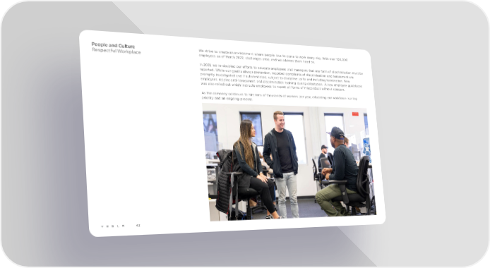 People and Culture We strive to create an environment where people love to come to work every day. With over 100,000 Respectful Workplace employees as of March 2022, challenges arise, and we address them head on. In 2021, we re-doubled our efforts to educate employees and managers that any form of discrimination must be reported. While our goal is always prevention, reported complaints of discrimination and harassment are promptly investigated and if substantiated, subject to discipline up to and including termination. New employees receive anti-harassment and discrimination training during orientation. A new employee guidebook was also rolled out which instructs employees to report all forms of misconduct without concern. As the company continues to hire tens of thousands of workers per year, educating our workforce is a top priority and an ongoing process. 42