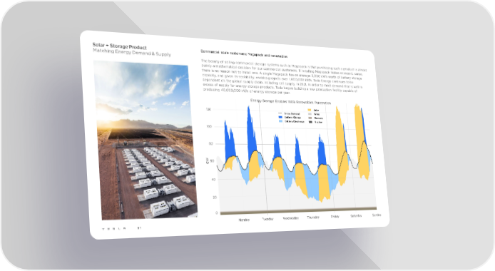 Solar + Storage Product Commercial scale customers: Megapack and renewables Matching Energy Demand & Supply The beauty of selling commercial storage systems such as Megapack is that purchasing such a product is almost purely a mathematical decision for our commercial customers. If installing Megapack makes economic sense, there is no reason not to install one. A single Megapack has on average 3,000 kWh worth of battery storage capacity, and given its scalability, enables projects over 1,000,000 kWh. Tesla Energy continues to be dependent on the global supply chain, including cell supply. In 2021, in order to meet demand that is well in excess of supply for energy storage products, Tesla began building a new production facility capable of producing 40,000,000 kWh of energy storage per year. Energy Storage Enables 100% Renewables Penetration 120 100 80 GW60 40 20 0 Monday Tuesday Wednesday Thursday Friday Saturday Sunday 91