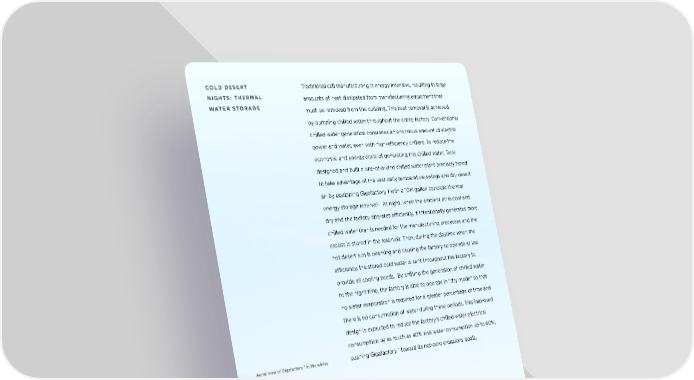 COLD DESERT Traditional cell manufacturing is energy intensive, resulting in large NIGHTS: THERMAL amounts of heat dissipated from manufacturing equipment that WATER STORAGE must be removed from the building. This heat removal is achieved by pumping chilled water throughout the entire factory. Conventional chilled water generation consumes an enormous amount of electric power and water, even with high-efficiency chillers. To reduce the economic and energy costs of generating this chilled water, Tesla designed and built a one-of-a-kind chilled water plant precisely tuned to take advantage of the vast daily temperature swings and dry desert air by equipping Gigafactory 1 with a 10M gallon concrete thermal energy storage reservoir. At night, when the ambient air is cool and dry and the factory operates efficiently, it intentionally generates more chilled water than is needed for the manufacturing processes and the excess is stored in the reservoir. Then, during the daytime when the hot desert sun is beaming and causing the factory to operate at low efficiency, the stored cold water is sent throughout the factory to provide all cooling needs. By shifting the generation of chilled water to the night time, the factory is able to operate in “dry mode” so that no water evaporation is required for a greater percentage of time and there is no consumption of water during these periods. This improved design is expected to reduce the factory’s chilled water electrical consumption by as much as 40% and water consumption up to 60%, Aerial view of Gigafactory 1 in the winter. pushing Gigafactory 1 toward its net-zero emissions goals. IMPACT REPORT 29