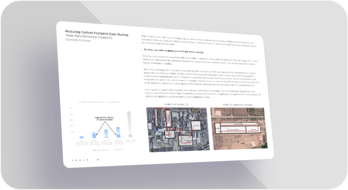 Reducing Carbon Footprint Even Further While emissions from the manufacturing phase can account for a relatively minor portion of lifetime vehicle emissions when Tesla Manufacturing Footprint: compared to the use phase, it is still an important part of lifecycle emissions. These are the steps that we are taking to reduce Current Actions the manufacturing GHG footprint: 1. Building new, better designed, more efficient vehicle factories Building a factory from the ground up with sustainability in mind can have a material impact on reducing energy use. For each component that requires less movement around the factory, and as we use fewer robots in the vehicle production process, energy consumption declines. Our Fremont Factory, where we started operation in 2010, was built over 60 years ago by established automotive original equipment manufacturers (OEM). While substantial improvements have been implemented since, it was not possible to fundamentally change the layout of this facility. In contrast, Tesla’s newer factories are built by us from the ground up and designed to be sustainable and efficient. For example, a delivery truck can back up and offload components at the exact part of the production line where such components are needed—reducing emissions associated with the production process. In our quest for constant improvement, we build each new factory to be better and more sustainably designed than the previous one. While we have already completed substantial improvements at Gigafactory Shanghai, further improvements will continue at Gigafactory Berlin-Brandenburg and Gigafactory Texas. Average Lifecycle Emissions in U.S. (gCO e/mi) 2 Model 3 in Fremont, CA Model 3 in Gigafactory Shanghai 500 400 Impacted by energy- 300 efficient factories 200 100 0 Model 3 Model 3 Model 3 Model 3 Avg. Mid-Size Ridesharing Use Personal Use Ridesharing Use Personal Use Premium ICE (solar charged) (solar charged) (grid charged) (grid charged) Manufacturing Phase Use Phase 17