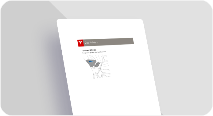 Tesla Model S | Owner's Manual Page 21 Page 23book.book Page 14 Friday, July 19, 2013 12:53 PM Cup Holders Cup Holders Cup Holders Opening and Closing To expose a cup holder, slide back the armrest. 2.14 MODEL S OWNERS MANUAL